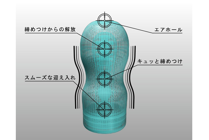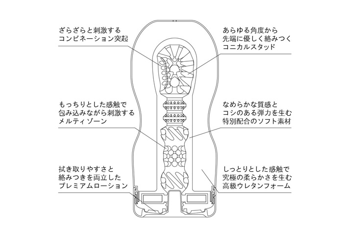 新たに設計された内部ディテール、超軟質に特別配合されたゲル、しっとりと包み込む高級ウレタンフォーム、拭き取りやすいプレミアムローション、その全てが高品質。